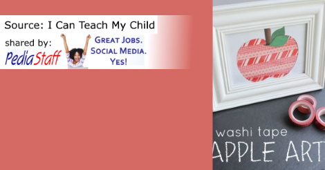 It’s back to school and nearly apple-picking time…the perfect time for some apple art with washi tape. My favorite apple art project is a tad bit messier than this more simple and sophisticated project…but children can participate in creating both!